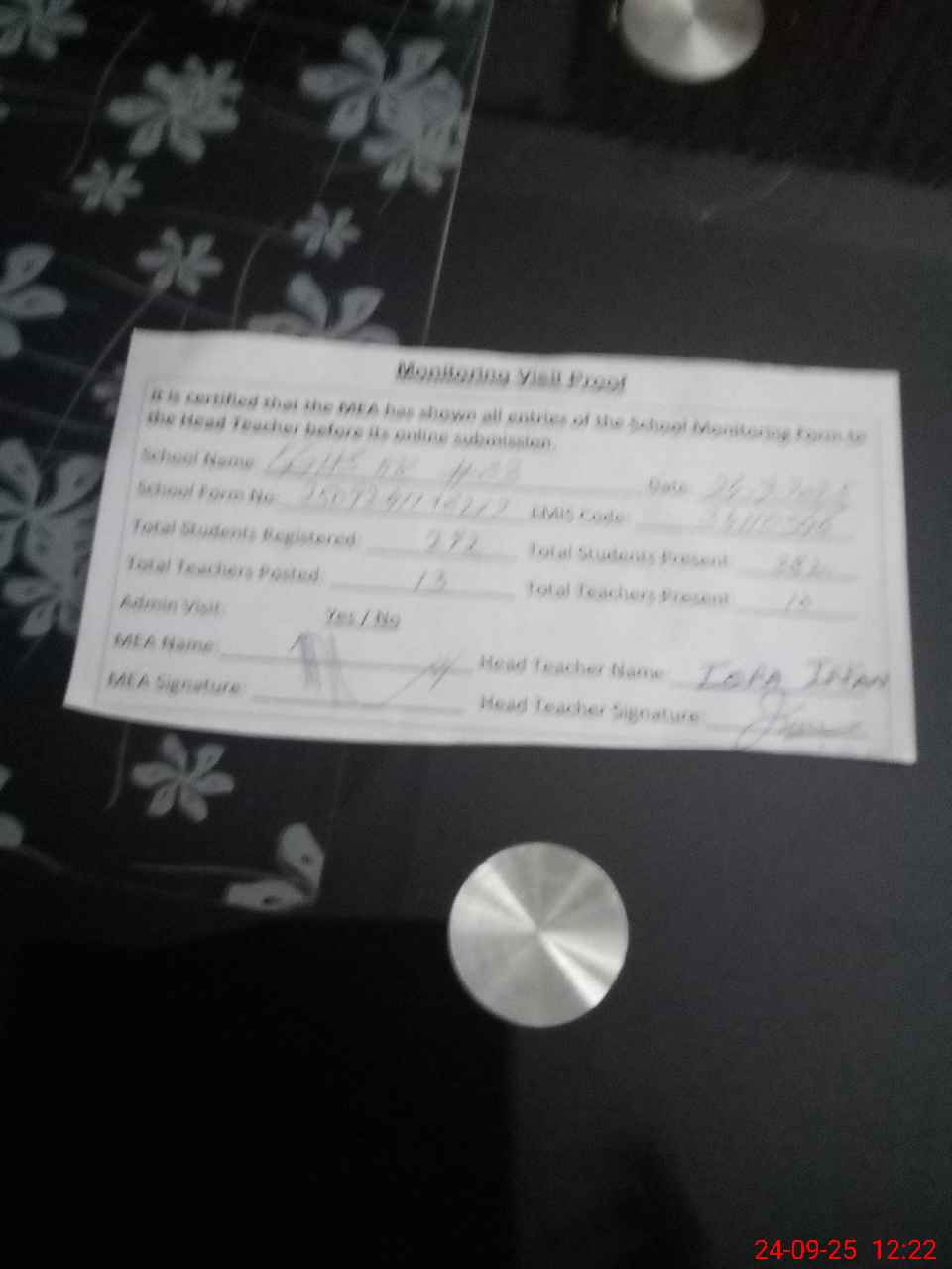 | Certified that this School was Inspected by the Undersigned MEA/DMO Today and the Information Stated Above is as Per Record. | |||||