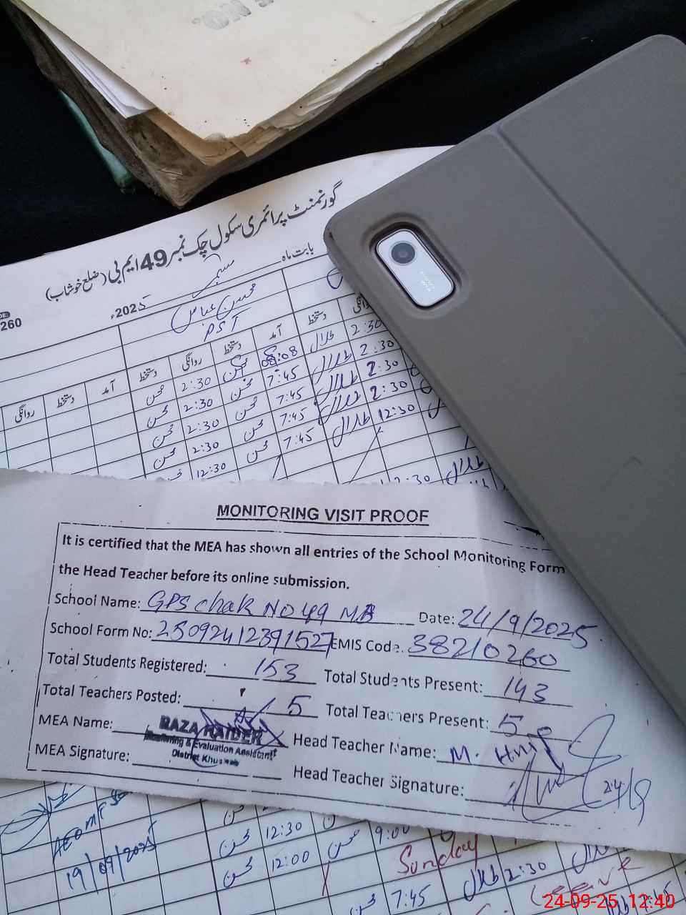 | EMIS Code: 38210260 | Name of School: GPS CHAK NO 49 MB | |||