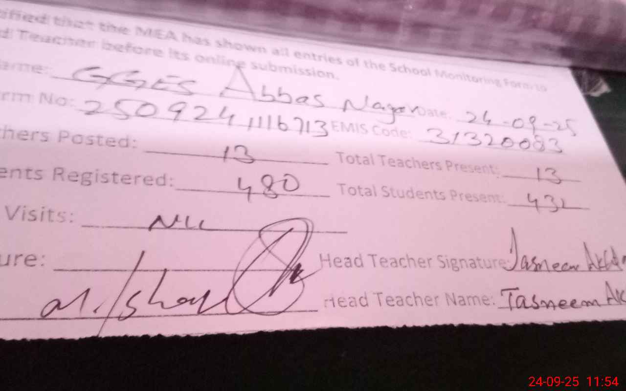 | EMIS Code: 31320083 | Name of School: GGES ABBAS NAGAR | |||