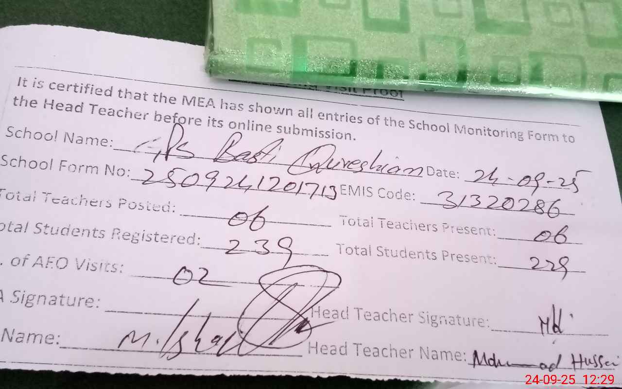 | EMIS Code: 31320286 | Name of School: GPS BASTI QURASHIAN | |||