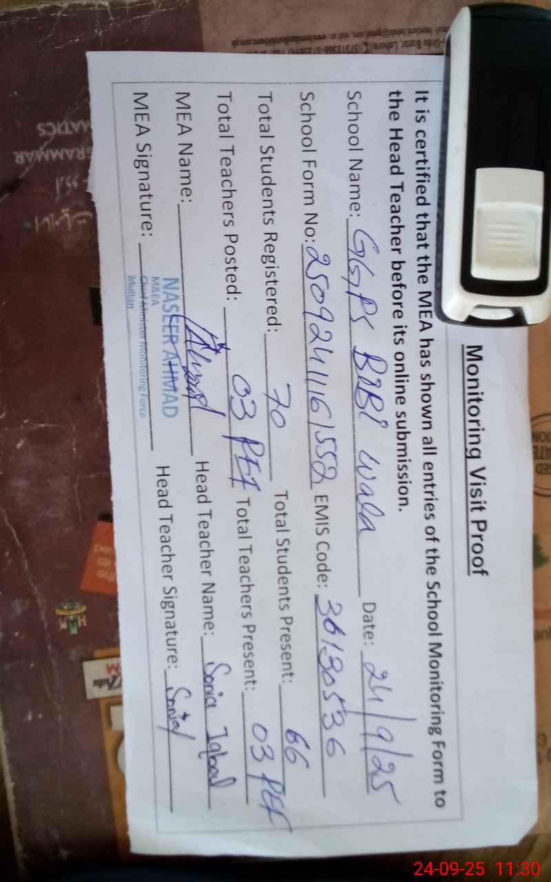| EMIS Code: 36130536 | Name of School: GGPS BIBI WALA | |||