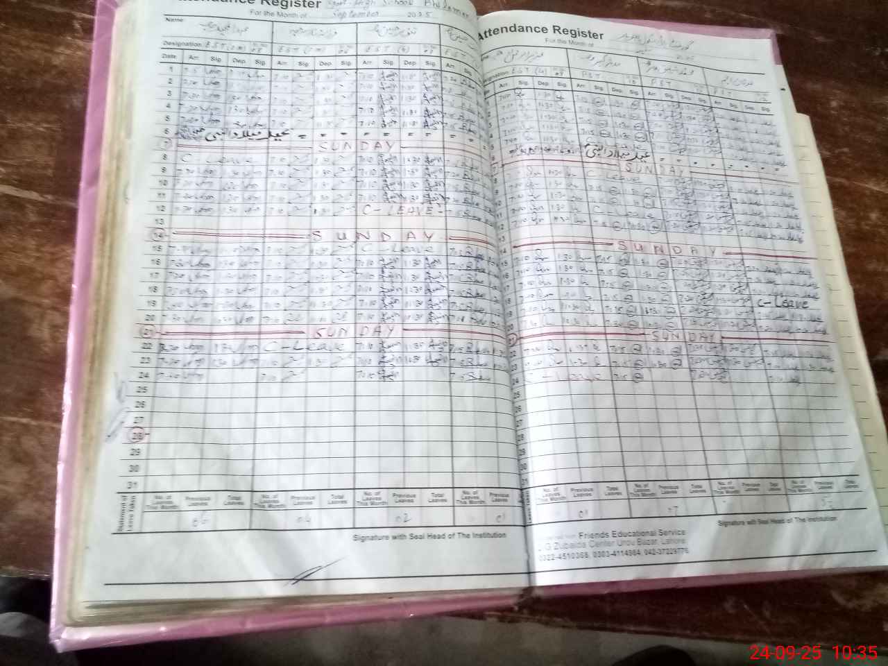 | CNIC | Full Name | Designation | R/C | Absence During Last Calender Month |