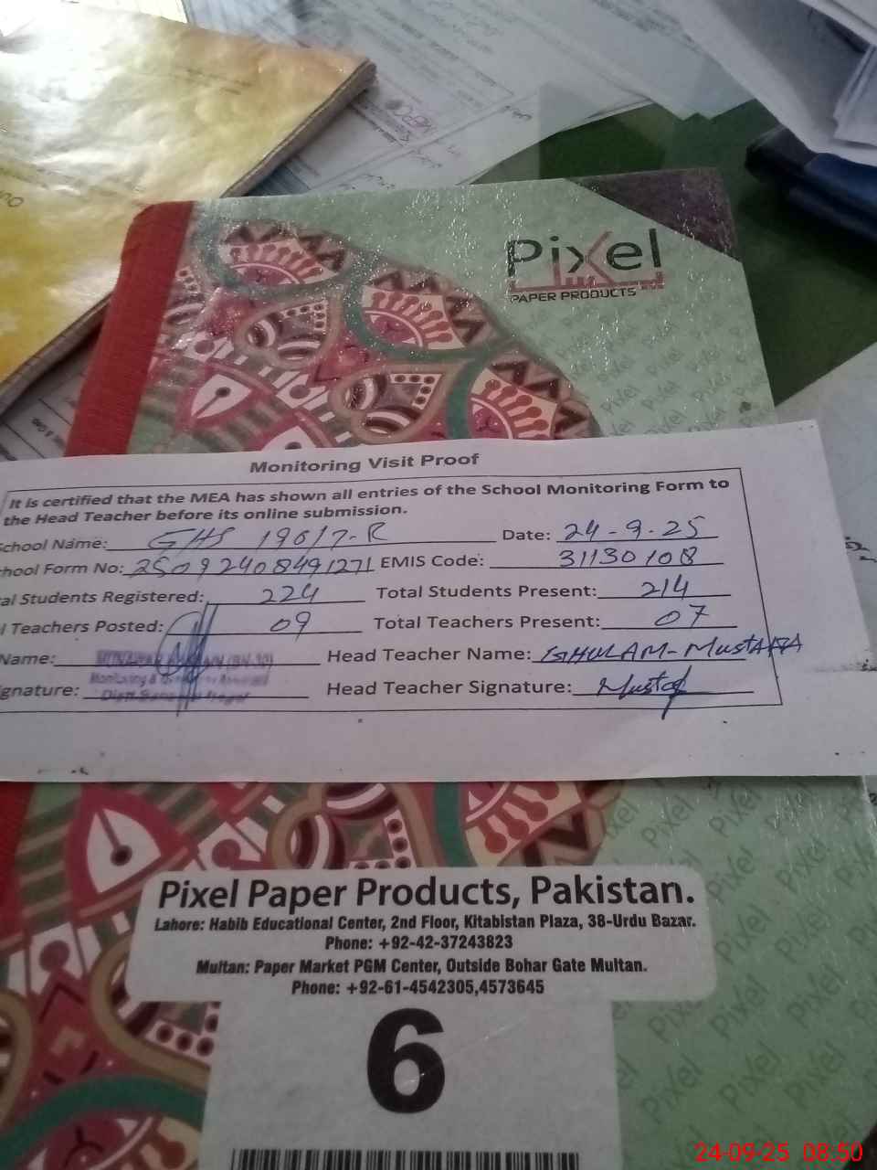 | EMIS Code: 31130108 | Name of School: GHS CHAK NO.190/7-R | |||