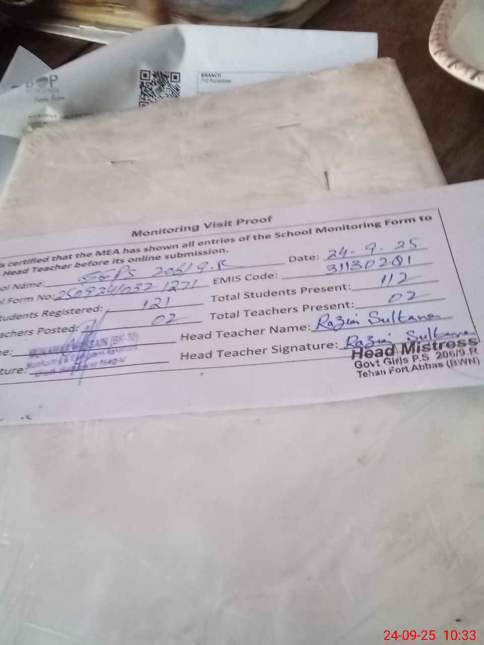 | EMIS Code: 31130281 | Name of School: GGPS CHAK NO 206/9-R | |||
