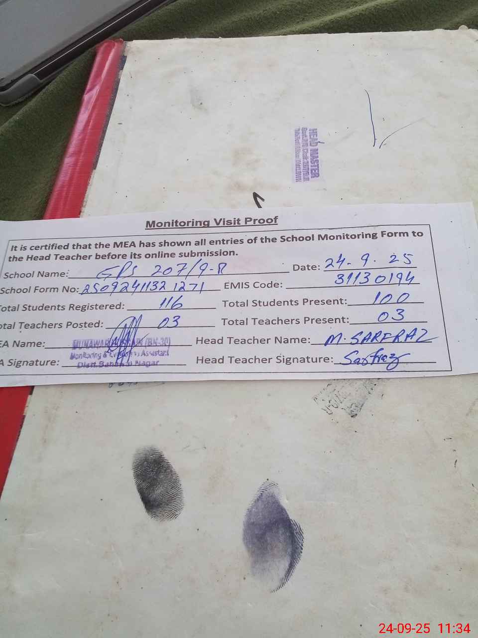 | EMIS Code: 31130194 | Name of School: GPS CHAK 207/9-R | |||