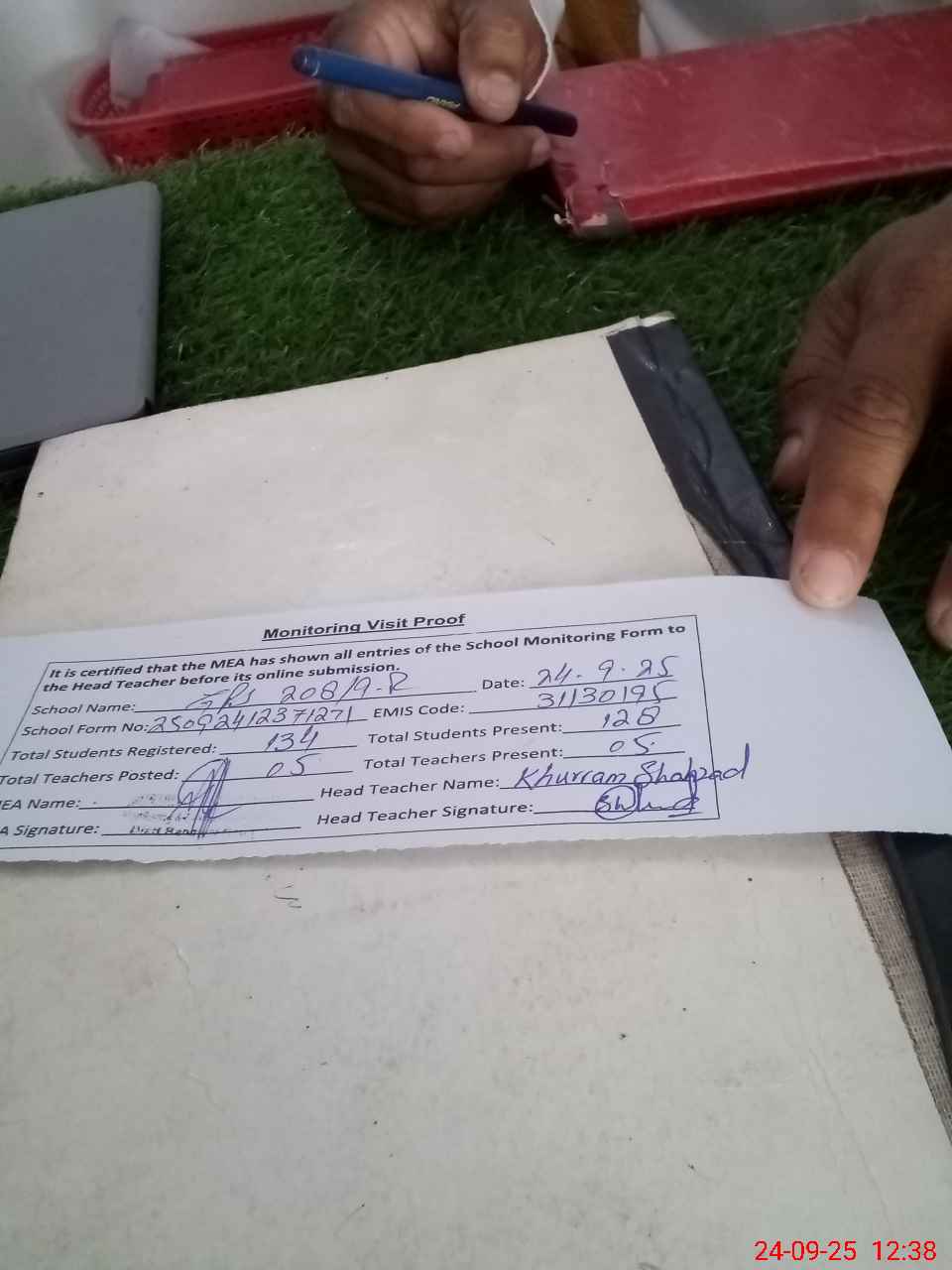 | Attendance Register | Head Teacher | MEA with School | Visit Proof |