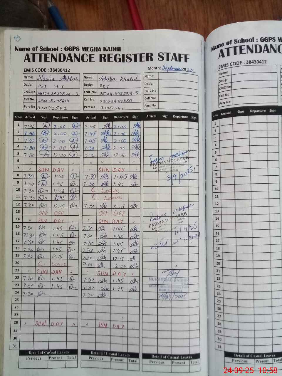 | CNIC | Full Name | Designation | R/C | Absence during last cal. month |