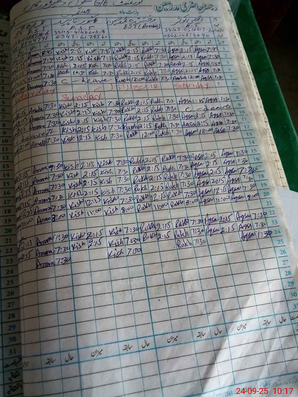 | Leave | Duty | Absent | Maternity | Medical | Ex- Pak |