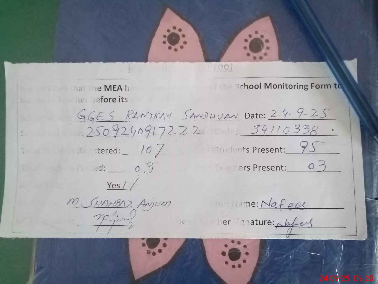 | EMIS Code: 34110338 | Name of School: GGES RAMKEY SANDHUWAN | |||
