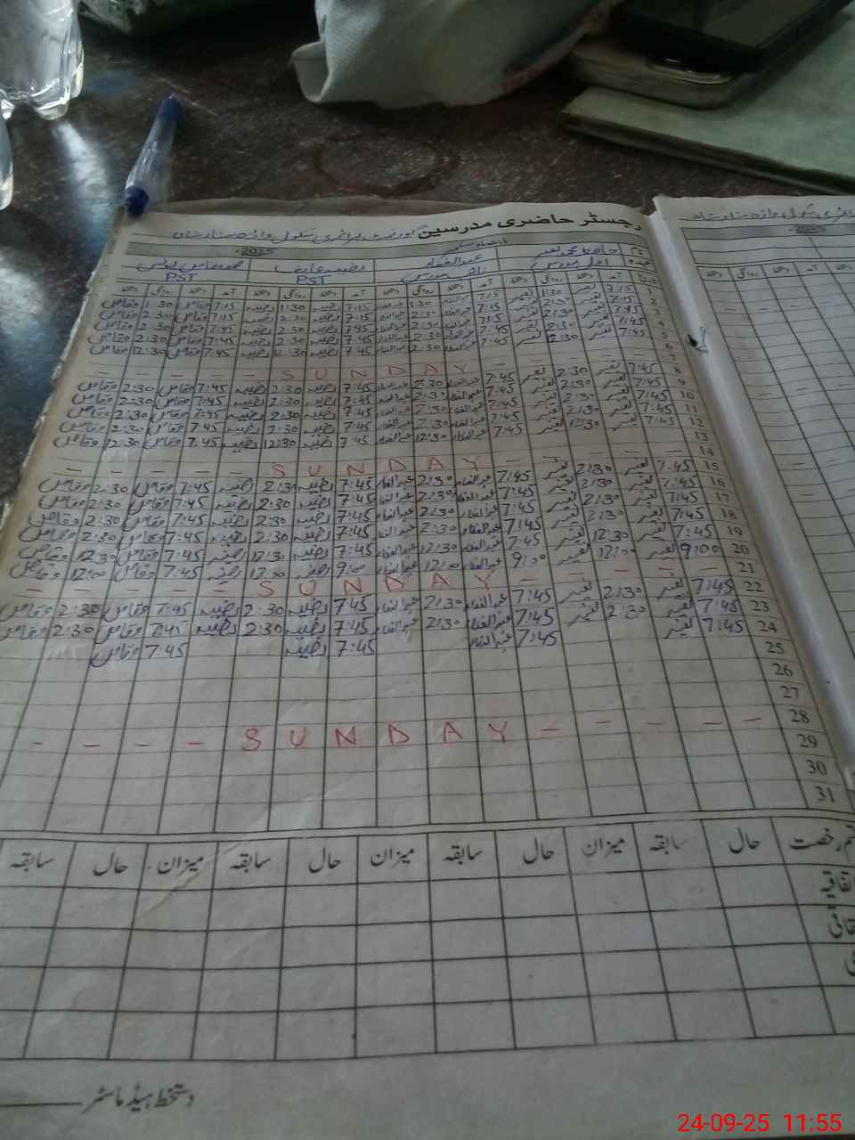 | CNIC | Full Name | Designation | R/C | Absence During Last Calender Month |
