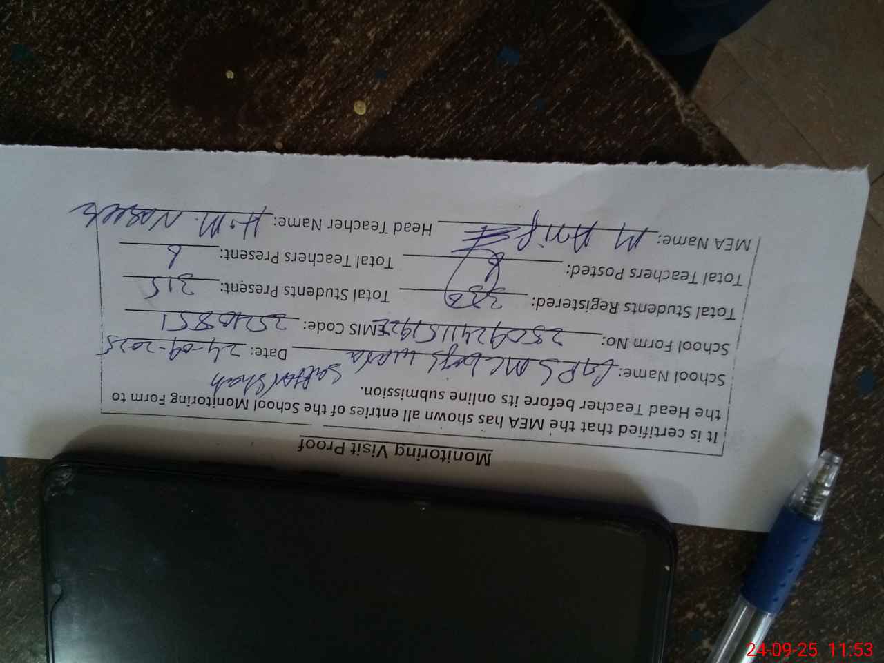 | Attendance Register | Head Teacher | MEA with School | Visit Proof |