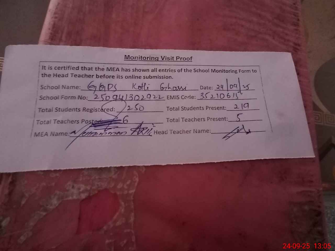 | EMIS Code: 35210615 | Name of School: GGPS KOTLI GHASI | |||