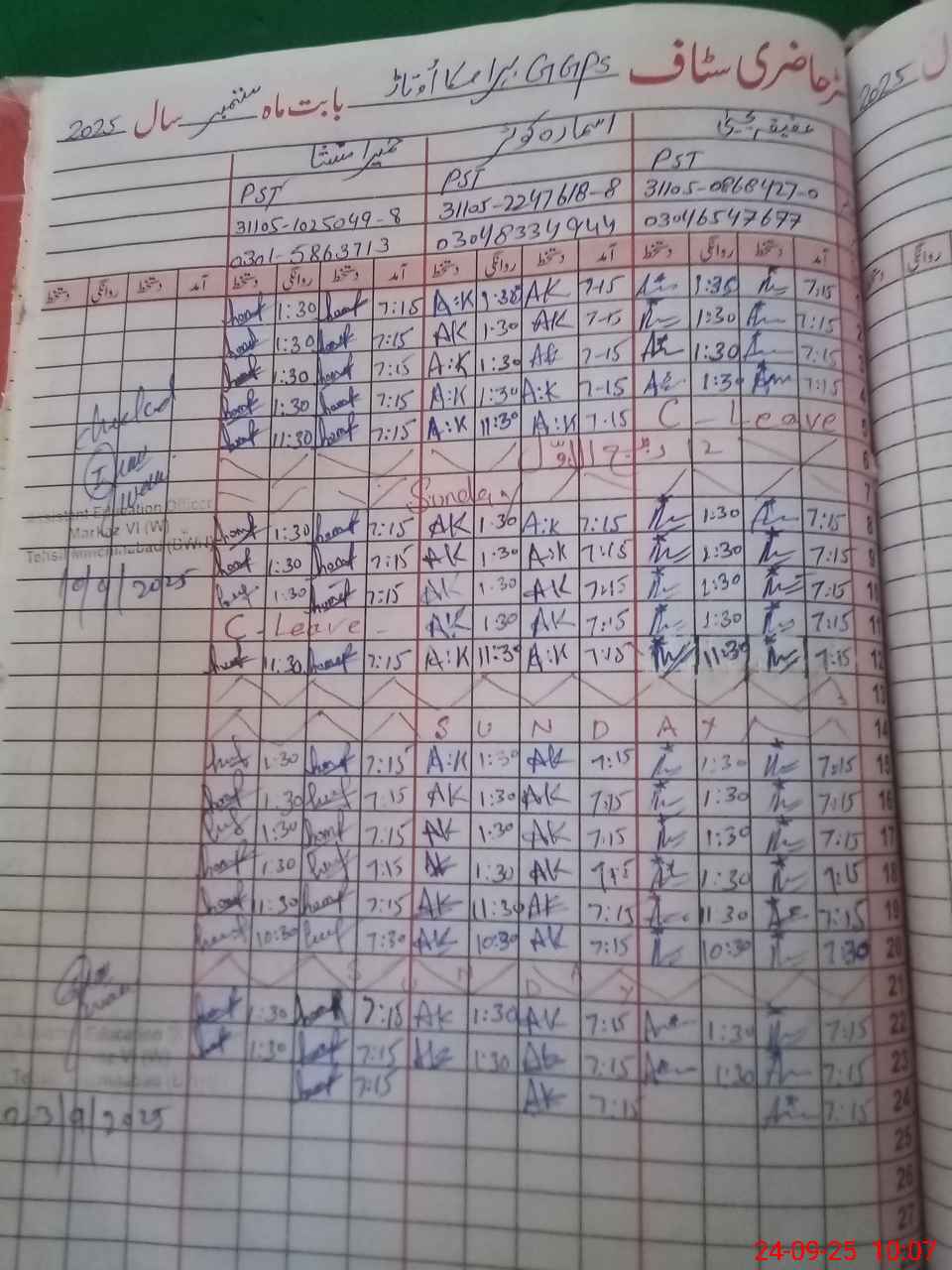 | Name: Hu**** Ma**** Designation: (School Headmaster's/Headmistress's) HT PST Phone/Cell Number: 03**** |