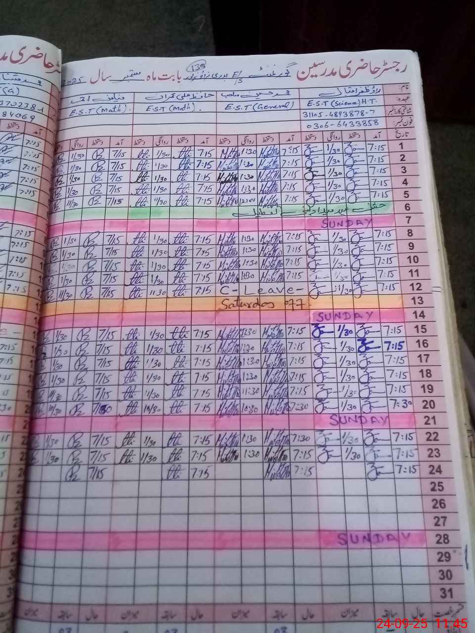 | Name: Za**** Iq**** Designation: (School Headmaster's/Headmistress's) EST Science Phone/Cell Number: 03**** |