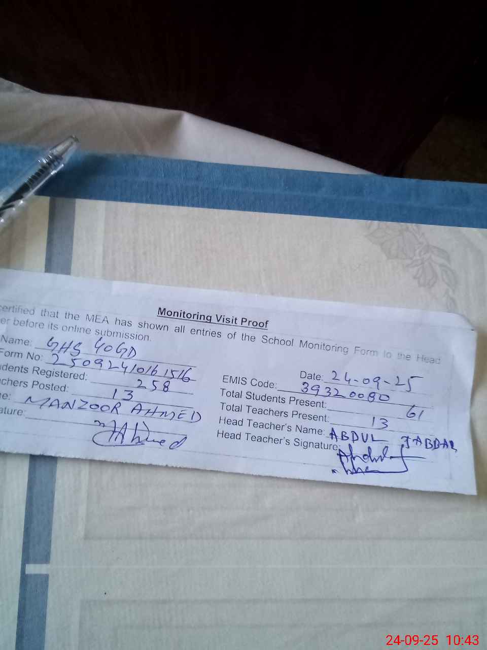 | EMIS Code: 39320080 | Name of School: GHS 40/G.D | |||