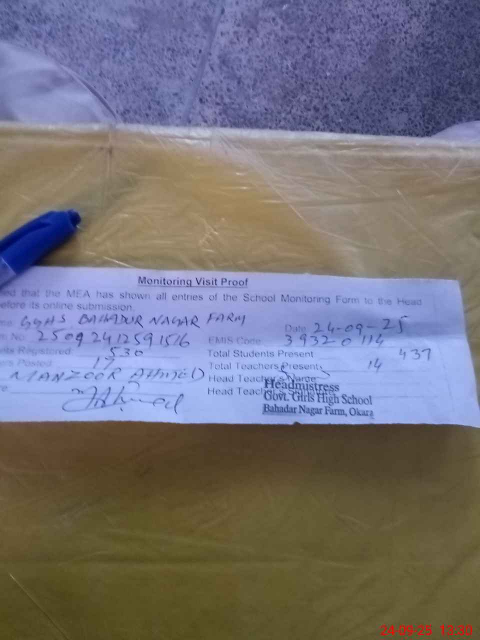 | EMIS Code: 39320114 | Name of School: GGHS BAHADAR NAGER FARM | |||