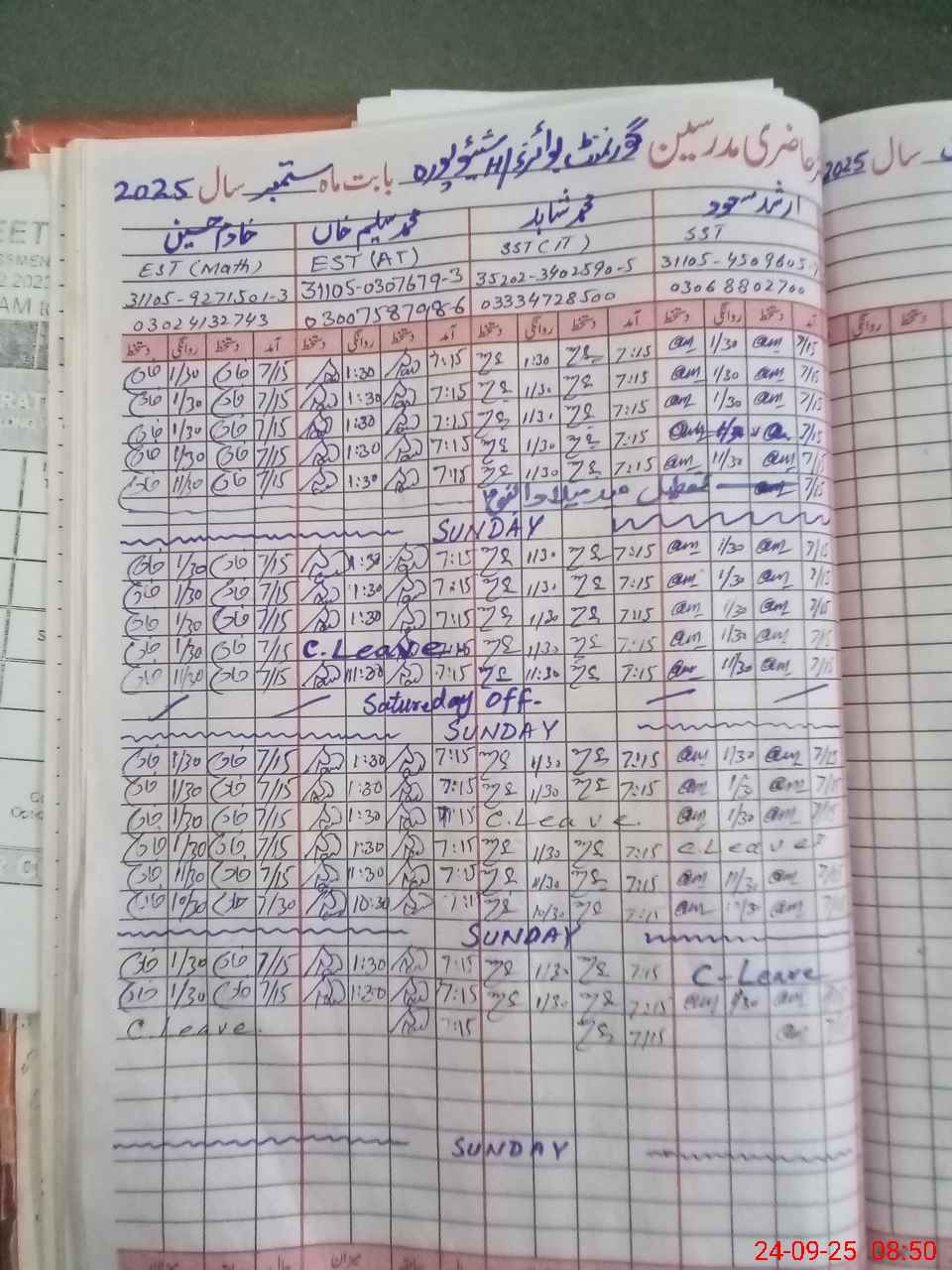 | CNIC | Full Name | Designation | R/C | Absence During Last Calender Month |