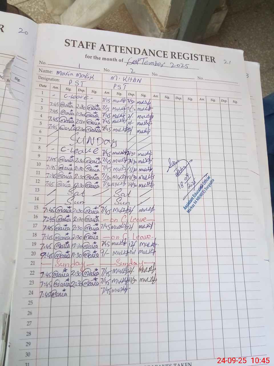 | Name: MU**** KH**** Designation: (School Headmaster's/Headmistress's) PST Phone/Cell Number: 03**** |