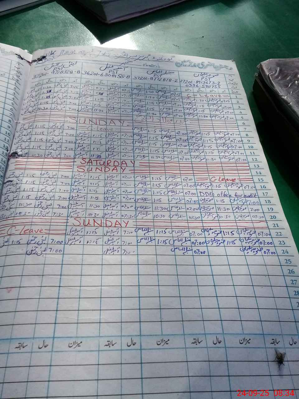 | Leave | Duty | Absent | Maternity | Medical | Ex- Pak |