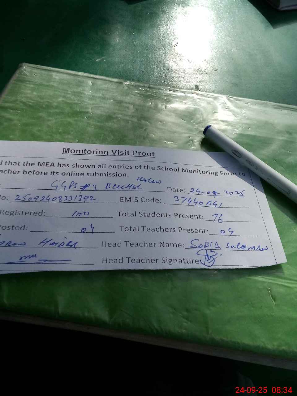 | Attendance Register | Head Teacher | MEA with School | Visit Proof |