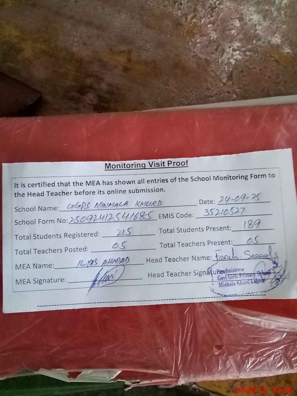 | EMIS Code: 35210527 | Name of School: GGPS MINHALA KHURD | |||