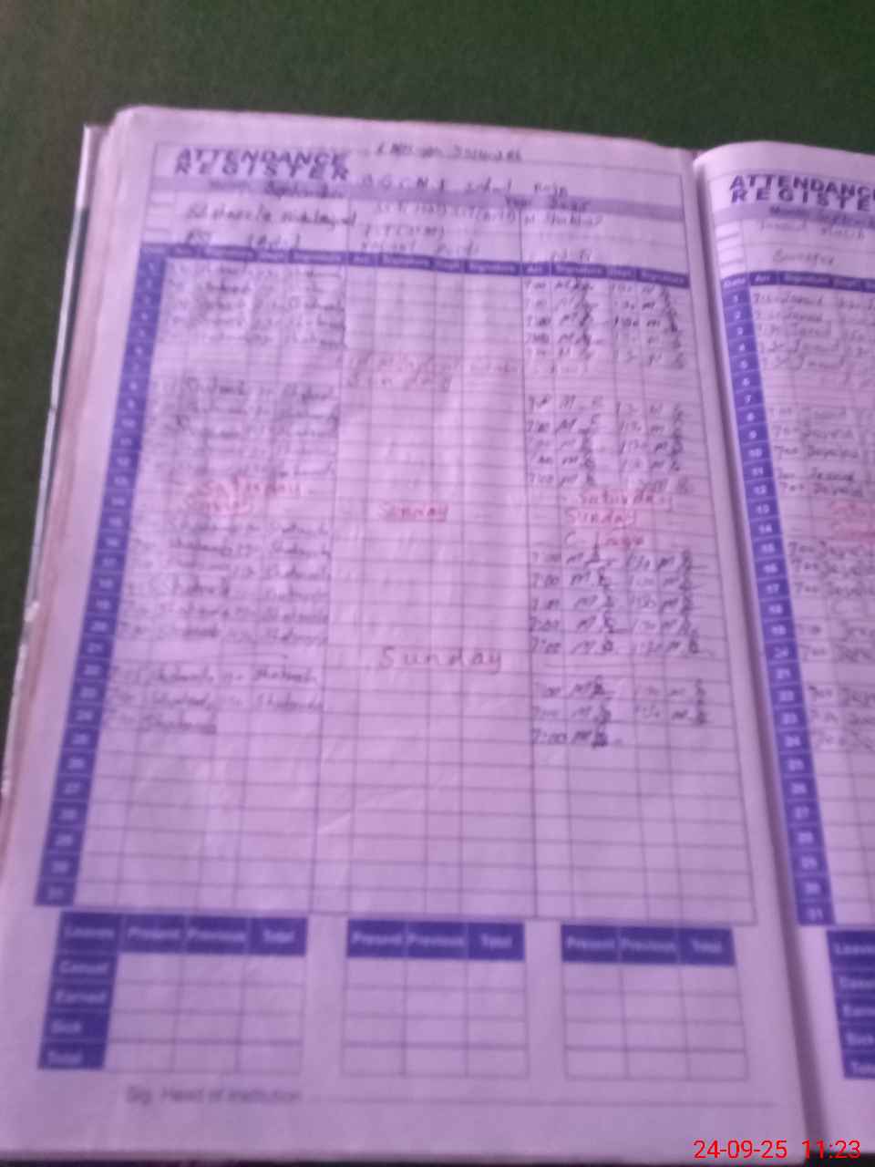 | Total Students Present | 0 | 0 | 41 | 26 | 29 | 26 | 22 | 13 | 23 | 19 | 29 | 228 | ||||