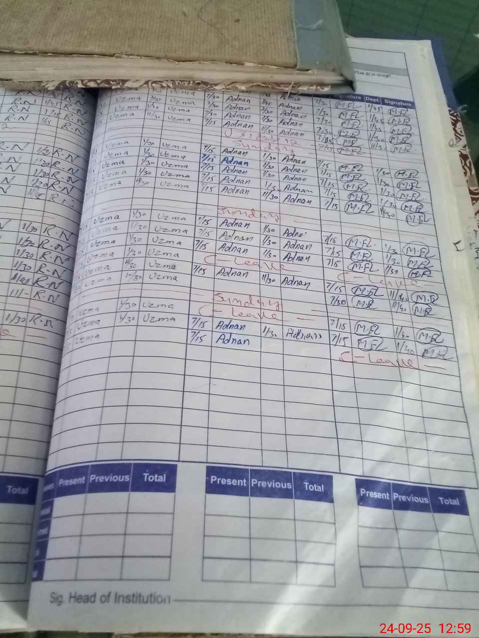 | Leave | Duty | Absent | Maternity | Medical | Ex- Pak |