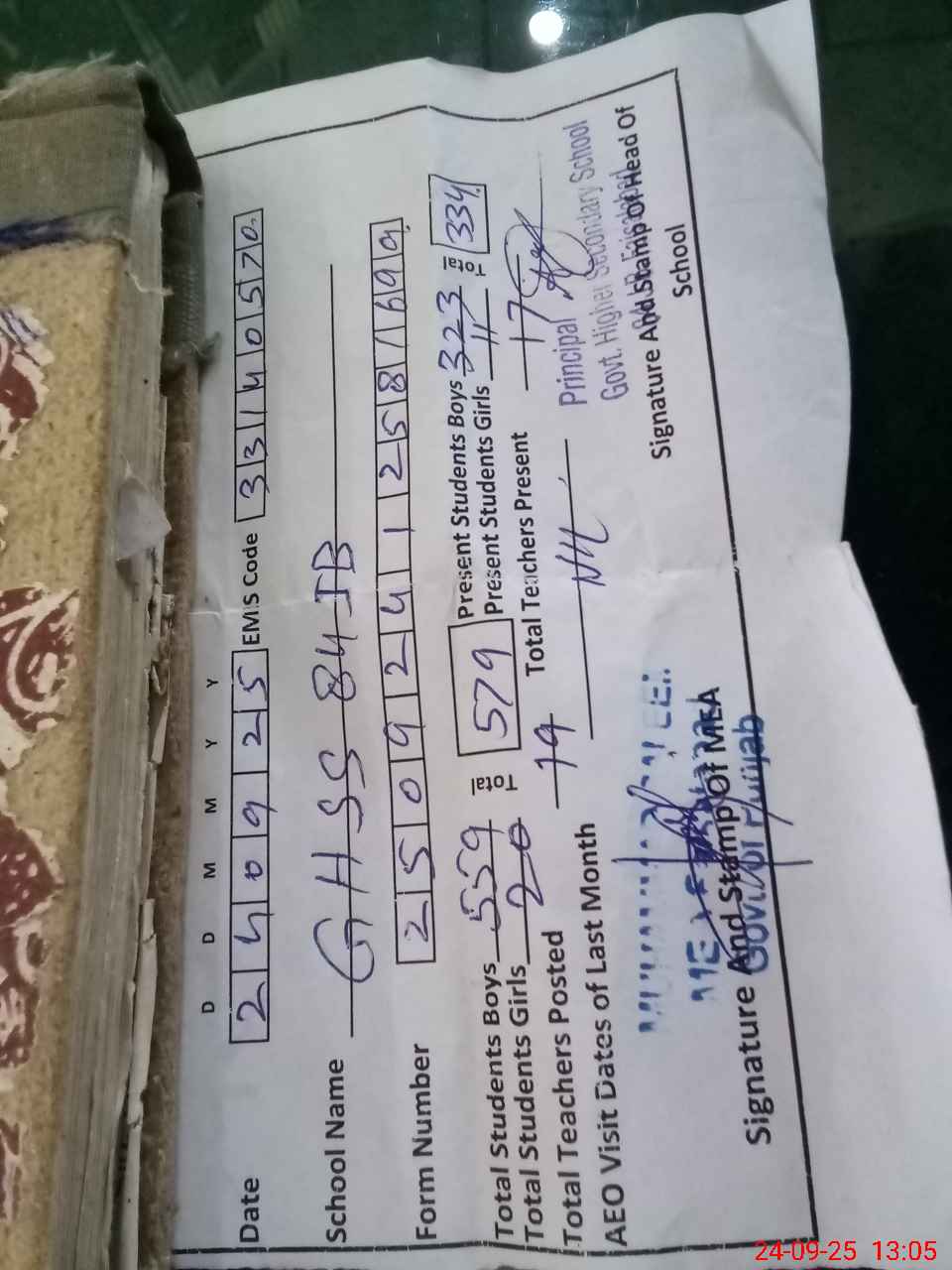 | Certified that this School was Inspected by the Undersigned MEA/DMO Today and the Information Stated Above is as Per Record. | |||||
