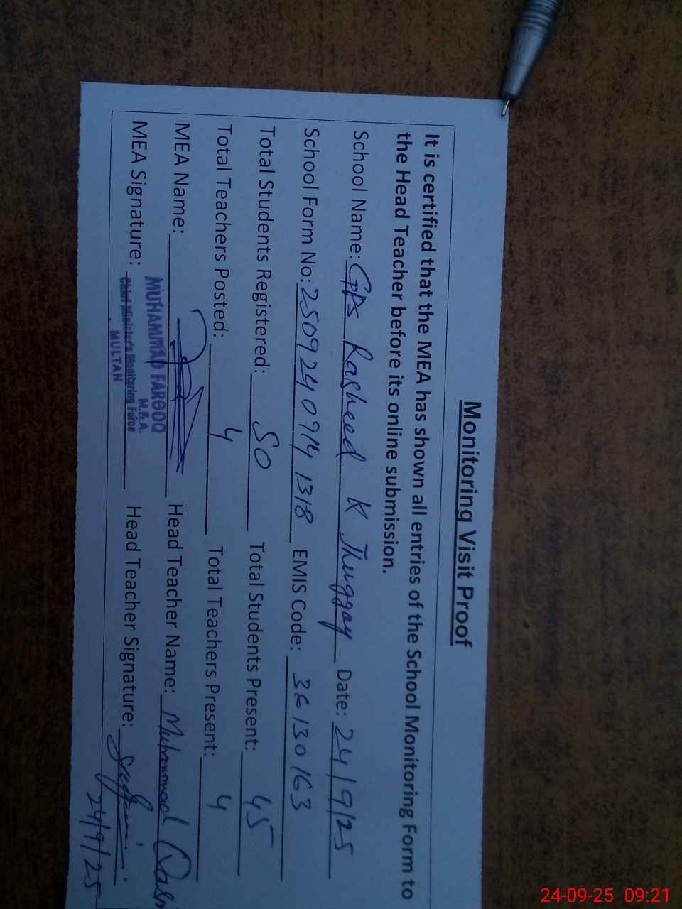 | EMIS Code: 36130163 | Name of School: GPS RASHEED-K-JHUGEY | |||