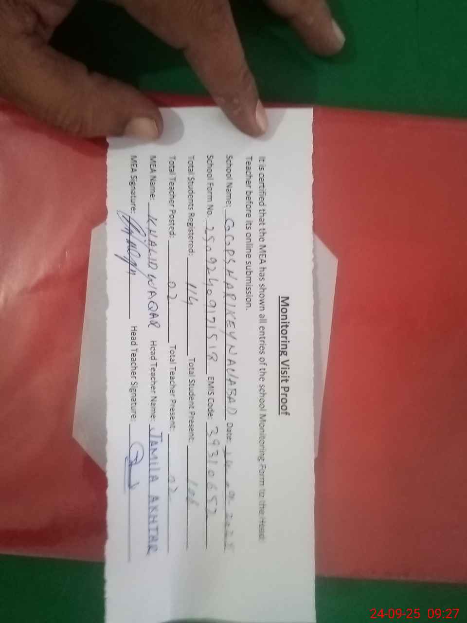 | EMIS Code: 39310652 | Name of School: GGPS HARIKEY NAU ABAD | |||