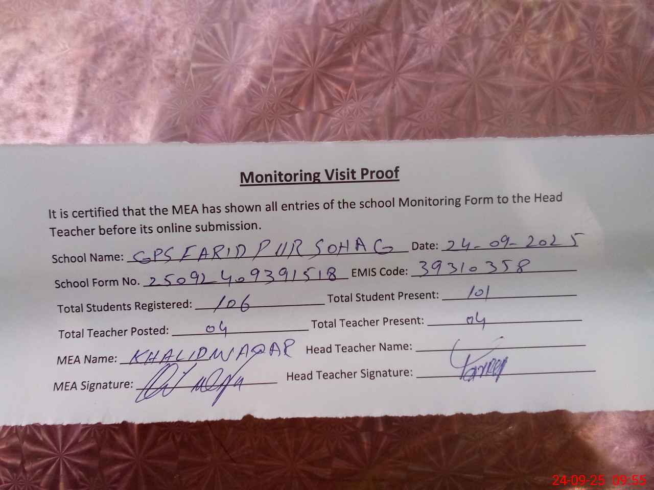 | EMIS Code: 39310358 | Name of School: GPS FARID PUR SOHAG | |||