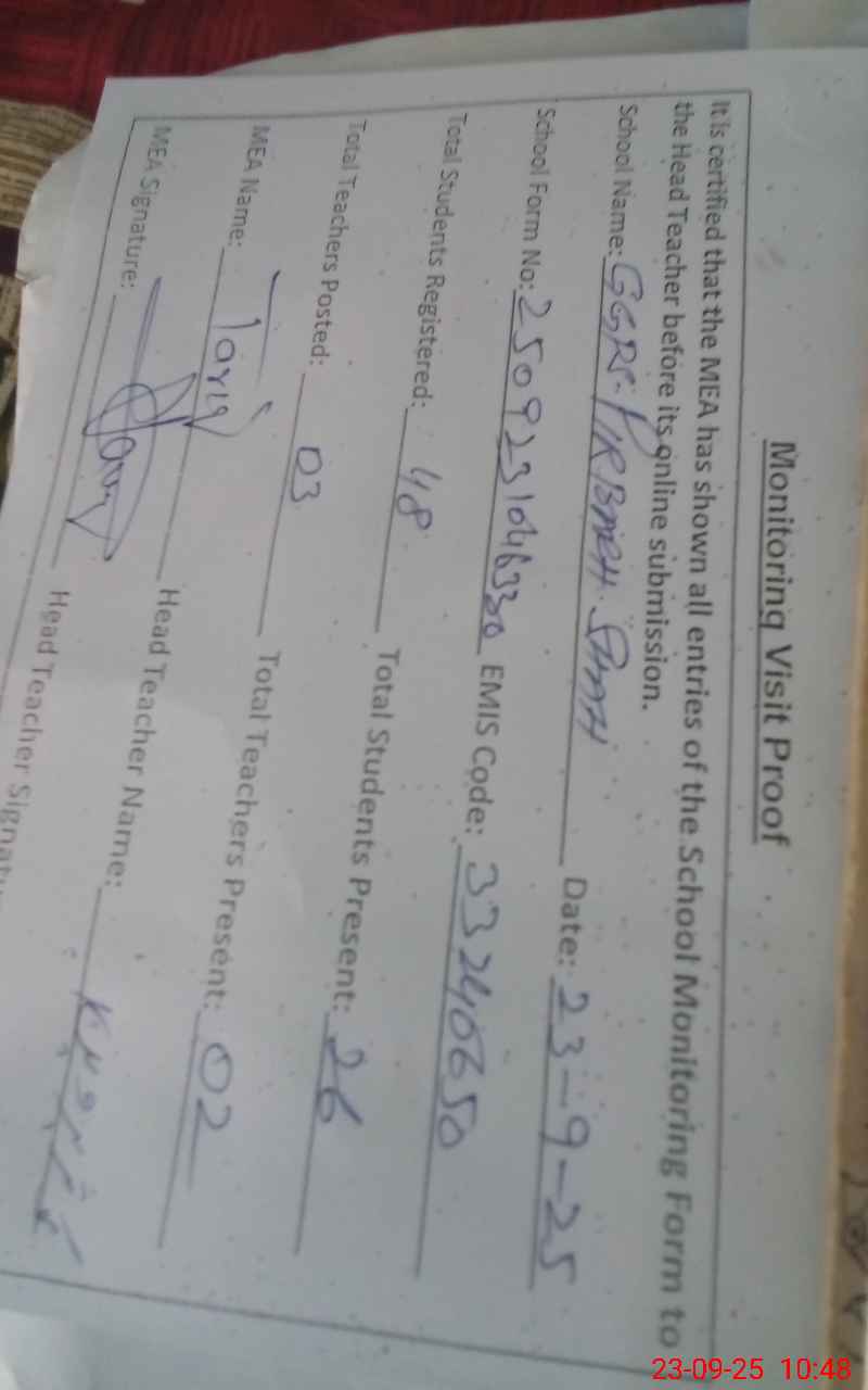 | EMIS Code: 33240650 | Name of School: GGPS PIR BAHR SHAH | |||