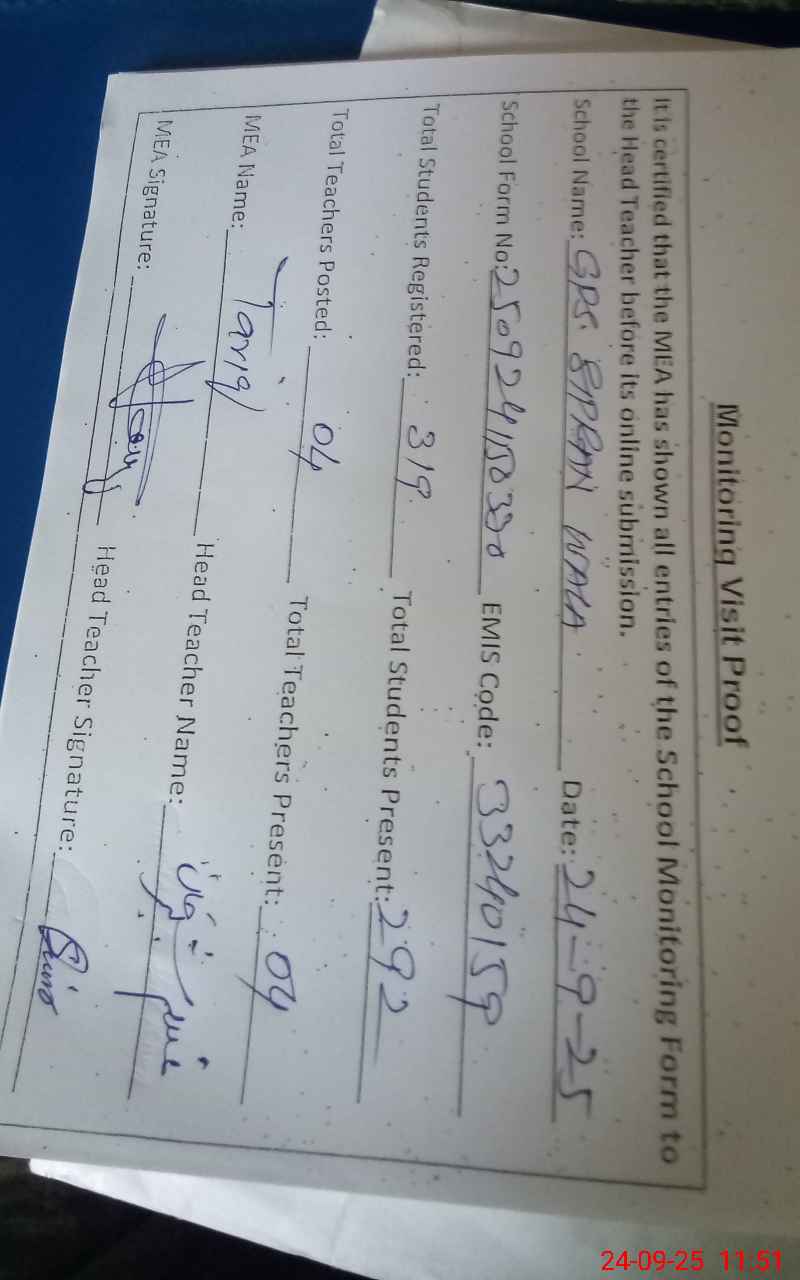 | EMIS Code: 33240159 | Name of School: GPS SIPRAN WALA | |||