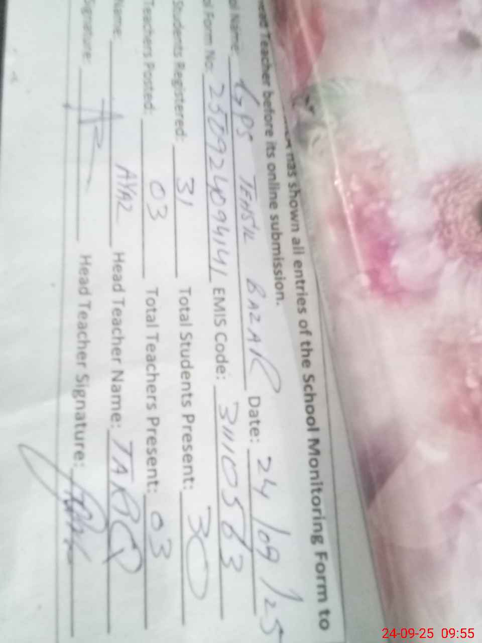 | EMIS Code: 31110563 | Name of School: GPS TEHSIL BAZAR | |||