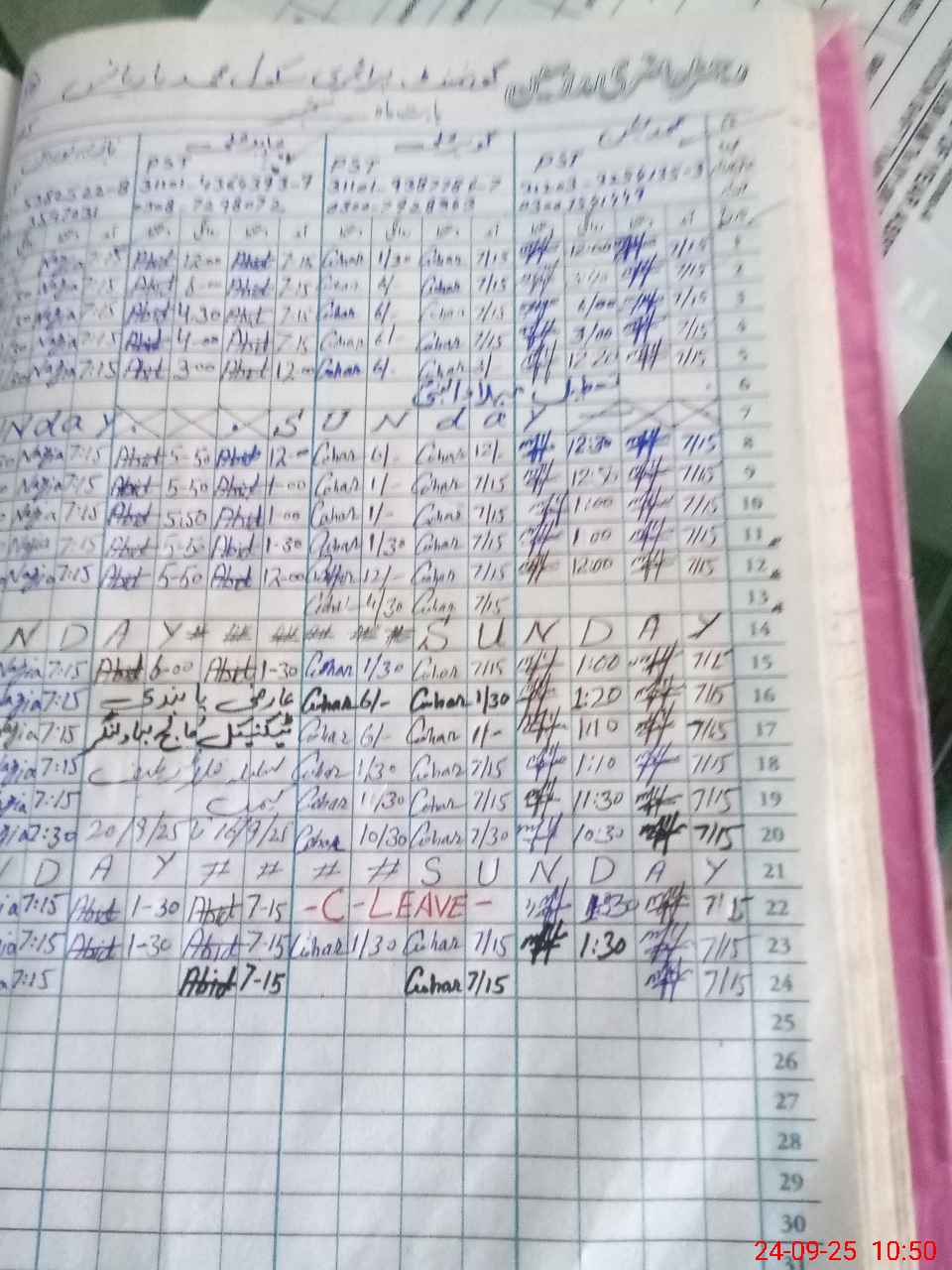 | CNIC | Full Name | Designation | R/C | Absence During Last Calender Month |