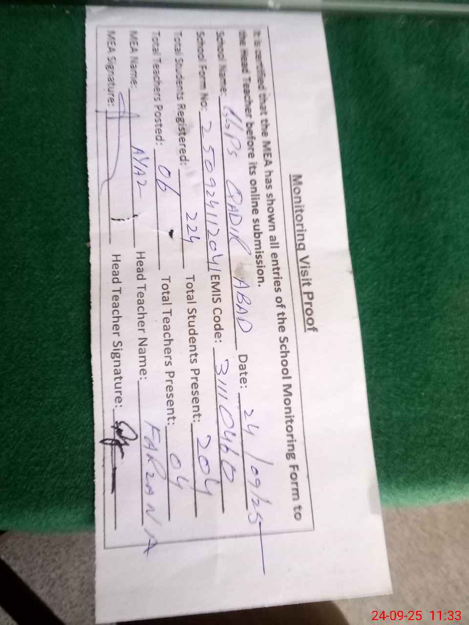 | EMIS Code: 31110460 | Name of School: GGPS QADIR ABAD | |||