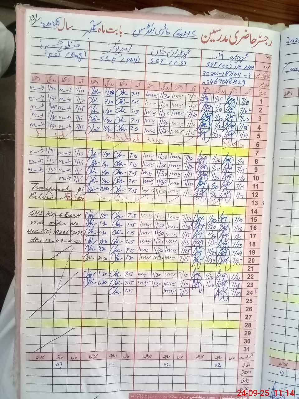 | Name: MU**** Il**** Designation: (School Headmaster's/Headmistress's) SST( SC ) Phone/Cell Number: 03**** |