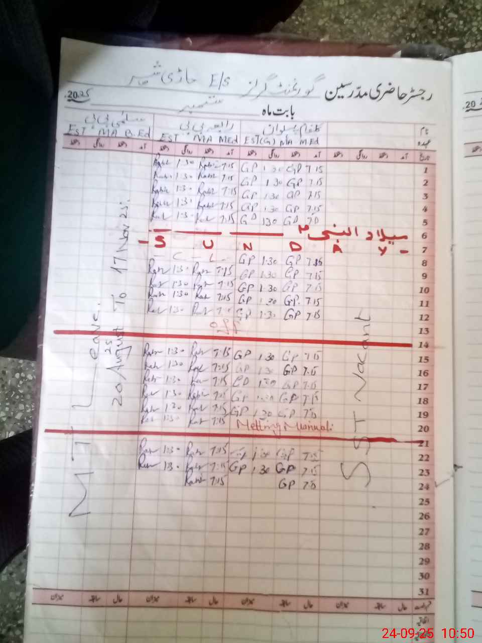 | Total no. of Classrooms: 8 No. of Classrooms Used for Teaching: 8 No. of Classrooms Storing Old Furniture, FTBs, etc: 0Comments if Any: Student attendance of 2nd shift not marked since 01 September 2025 |