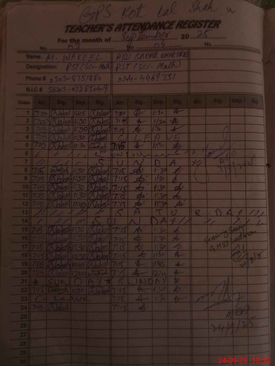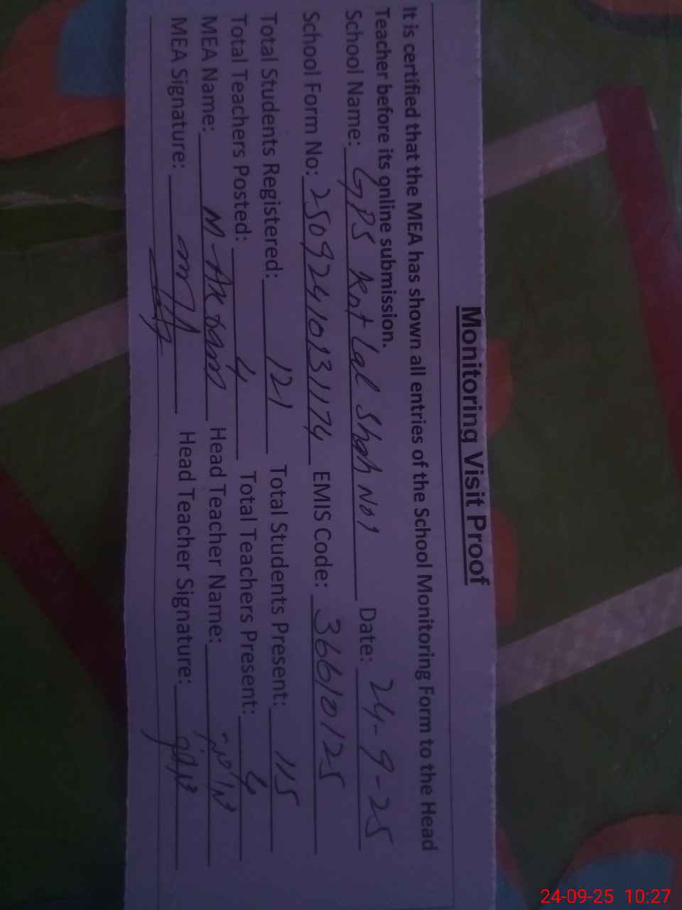 | EMIS Code: 36610125 | Name of School: GPS KOT LAL SHAH | |||