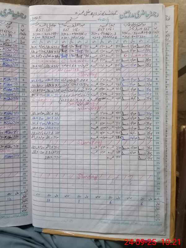 | 31**** | Mu**** Ra**** Kh**** | 2 | 2 | 0 | 0 | 0 | 0 | 0 | 0 | 0 | 0 | 0 | Absent (Un-Authorized) |