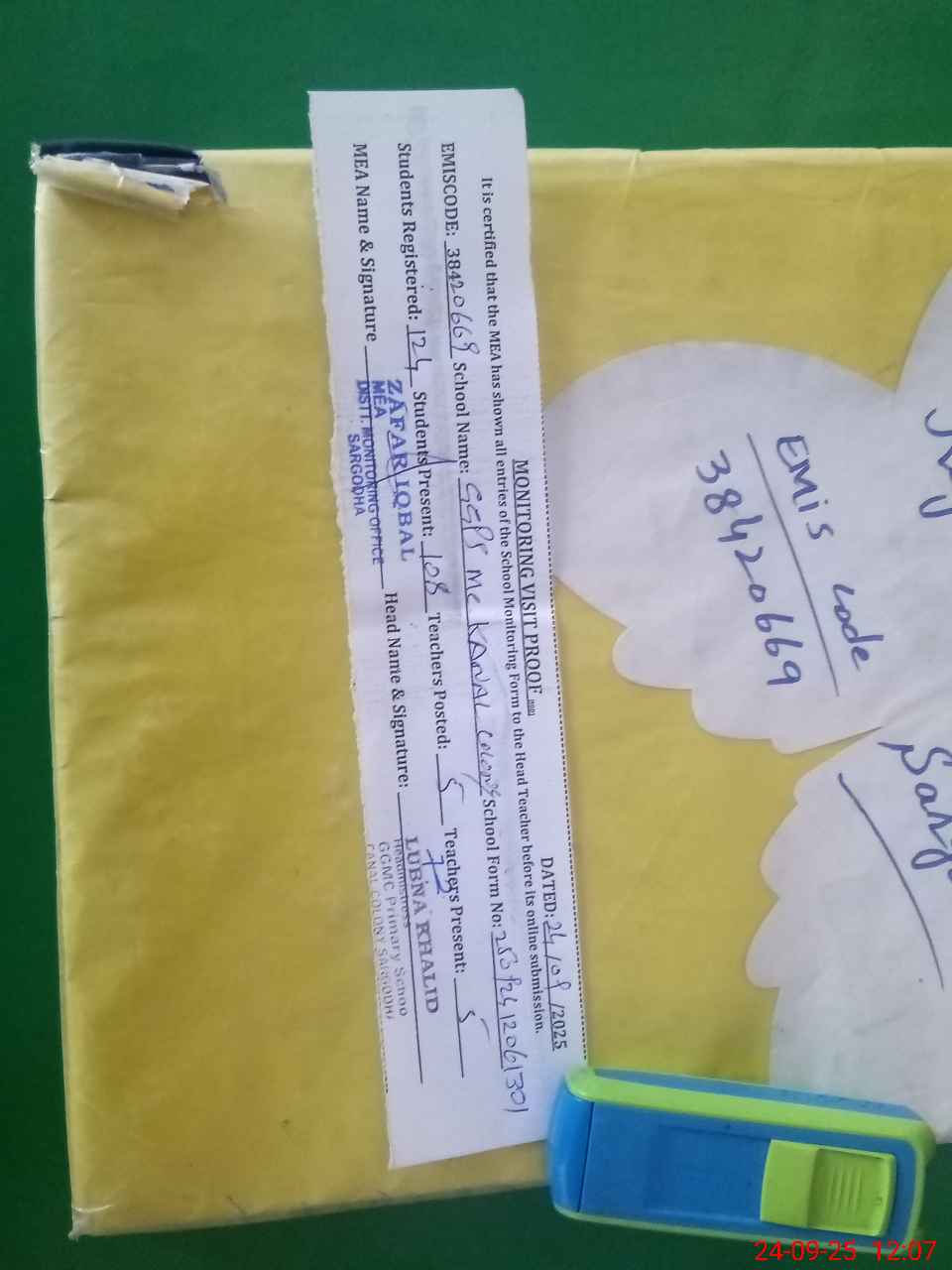 | EMIS Code: 38420669 | Name of School: GGPS MC KANAL COLONY SARGODHA | |||