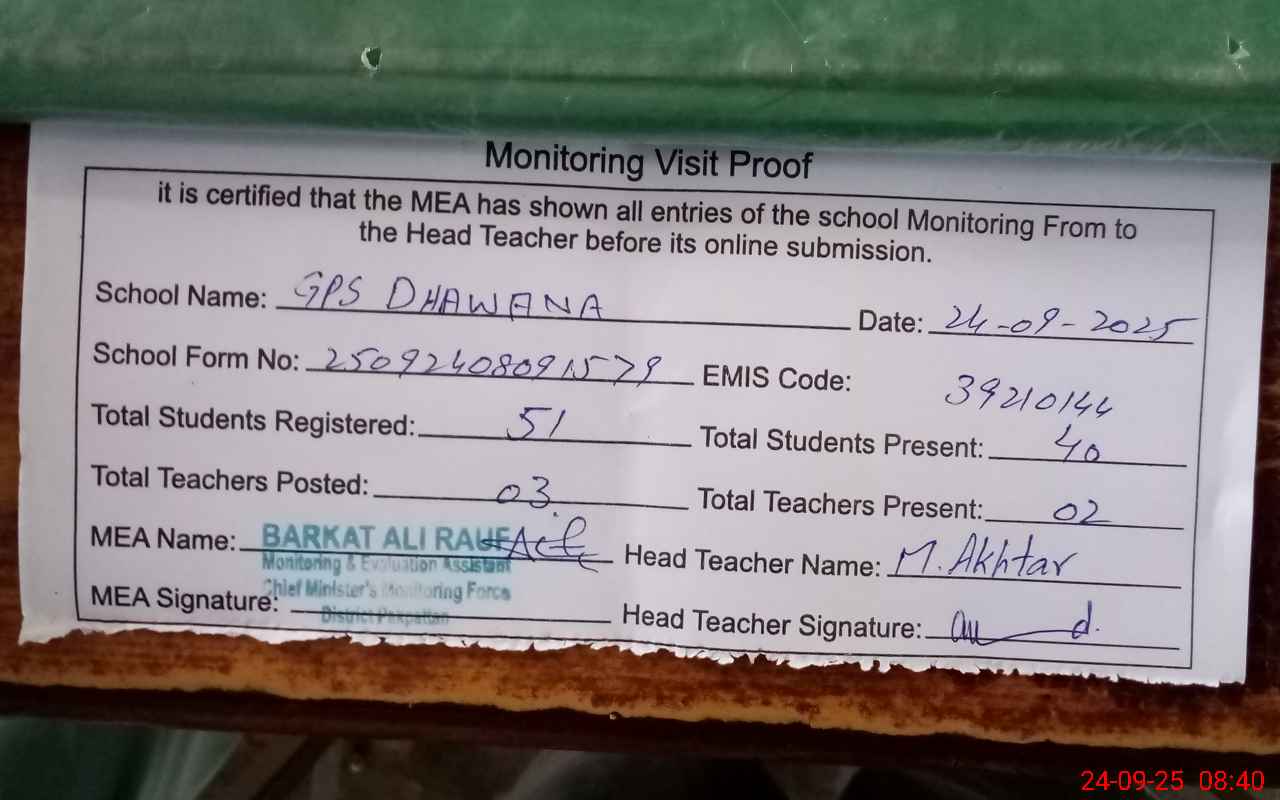 | EMIS Code: 39210144 | Name of School: GPS DHAWANA | |||