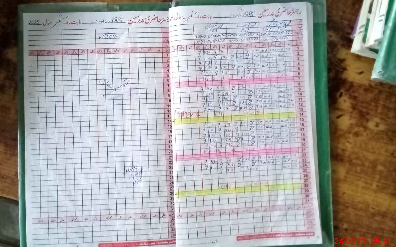 | Attendance Register | Head Teacher | MEA with School | Visit Proof |