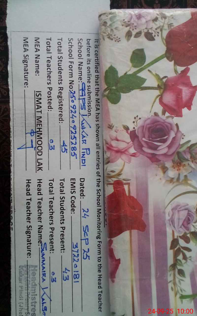 | EMIS Code: 37220181 | Name of School: GGPS KUKAR PINDI | |||