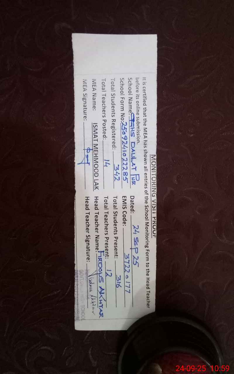 | EMIS Code: 37220177 | Name of School: GGHS DAULAT PUR | |||