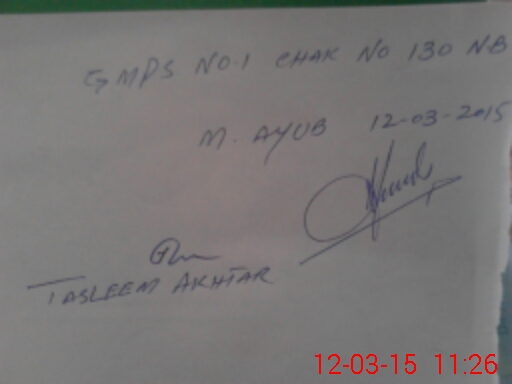 | EMIS Code: 38440238 | Name of School: GMPS NO.1 CHAK NO.130 NB | |||