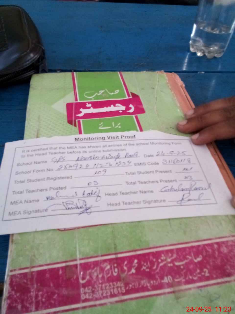 | Attendance Register | Head Teacher | MEA with School | Visit Proof |