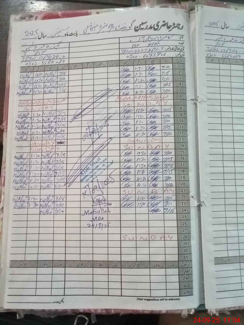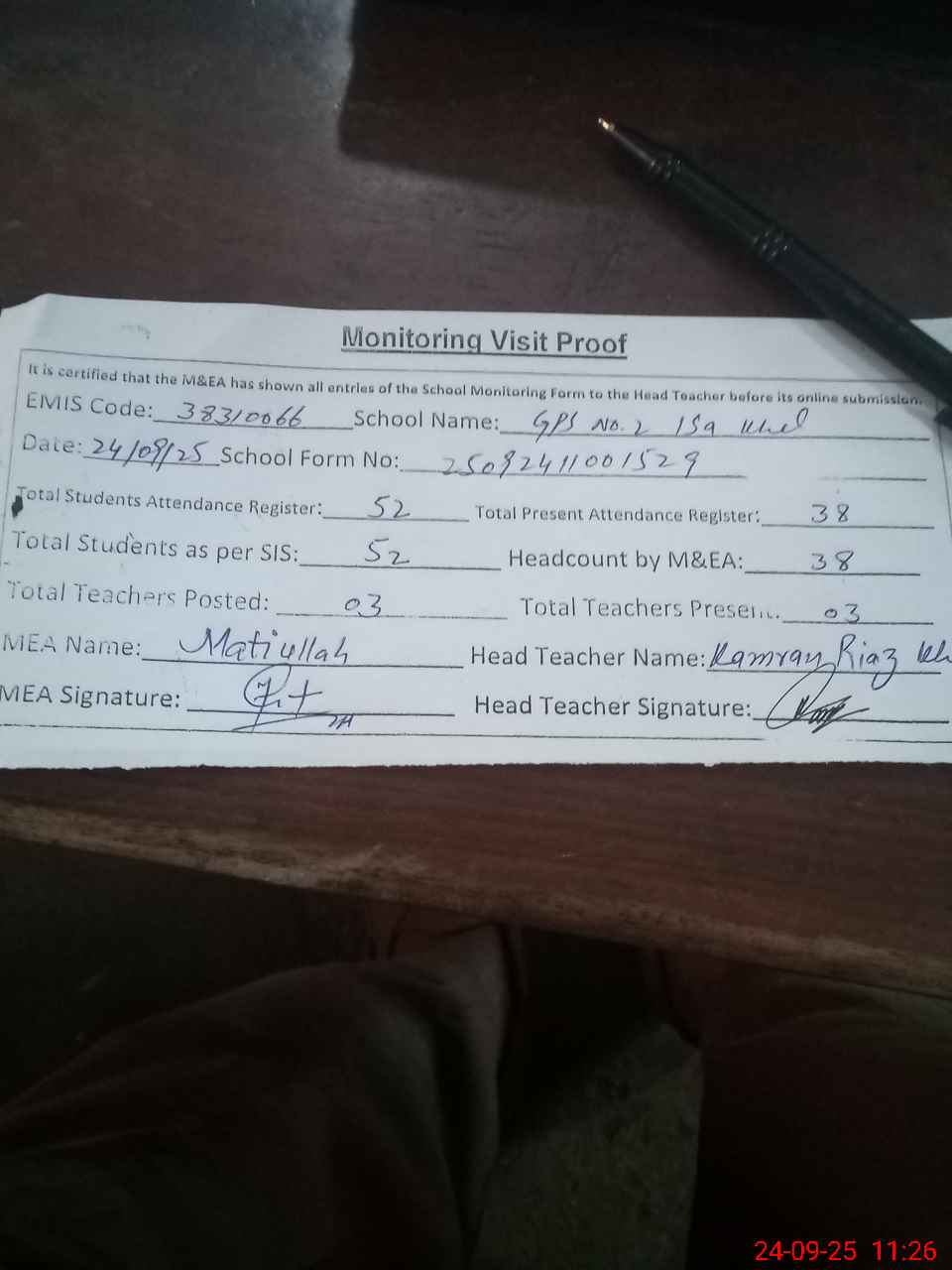 | Attendance Register | Head Teacher | MEA with School | Visit Proof |
