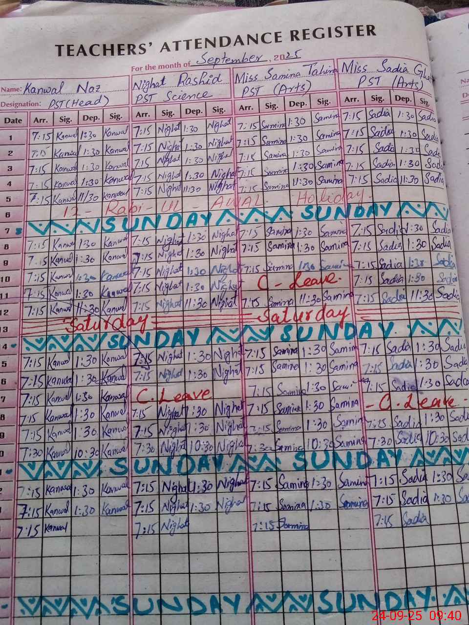 | CNIC | Full Name | Designation | R/C | Absence During Last Calender Month |