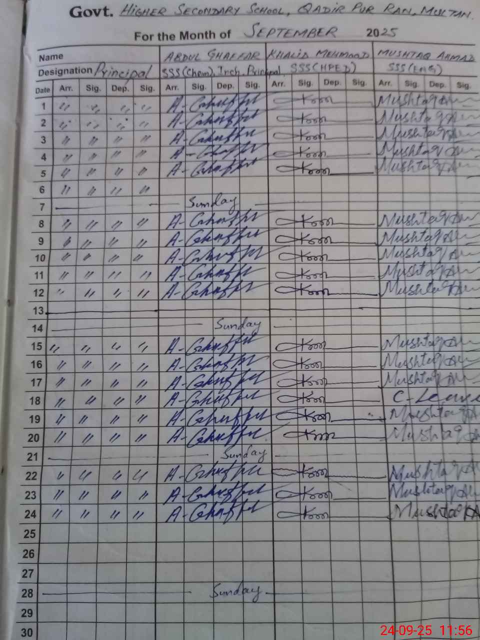 | EMIS Code: 36130003 | Name of School: GHSS QADIR PUR RAN MULTAN | |||